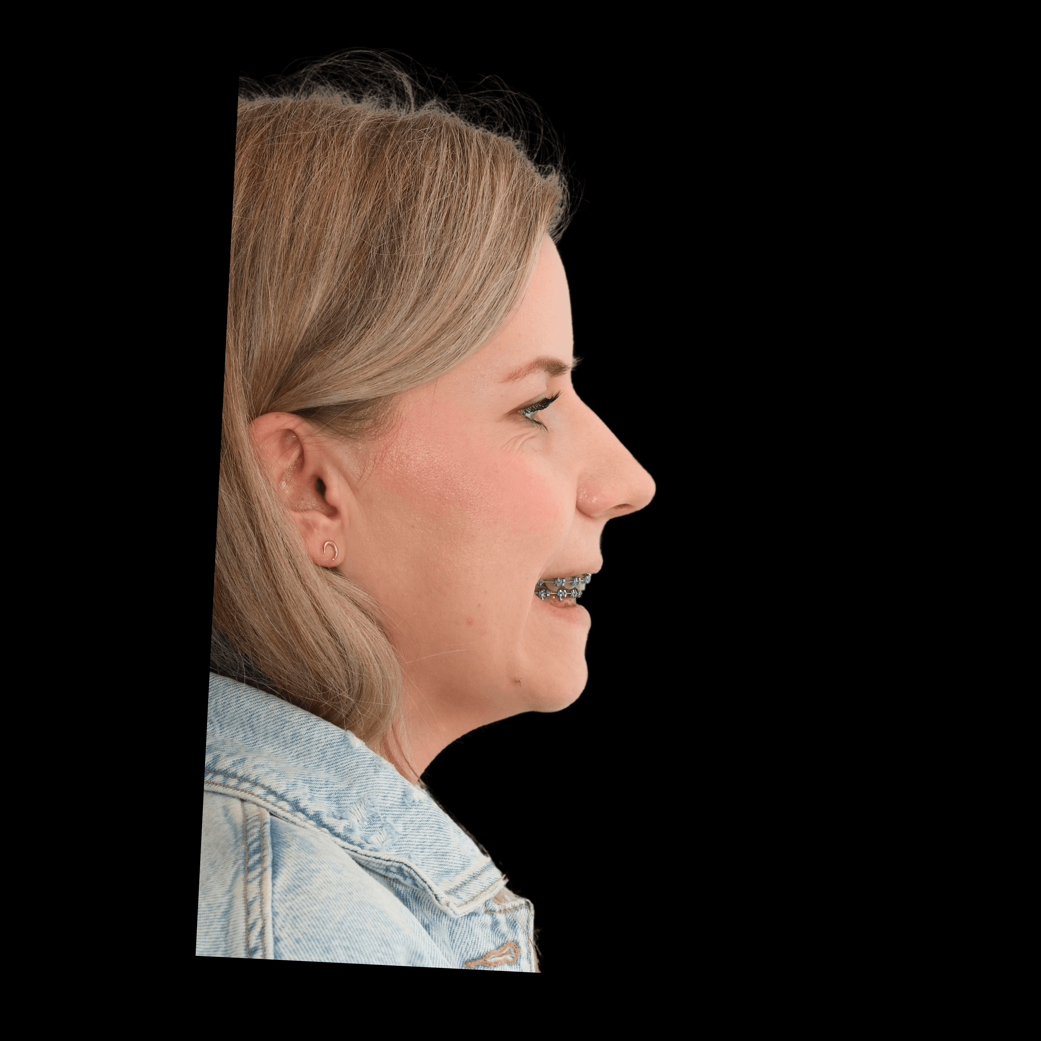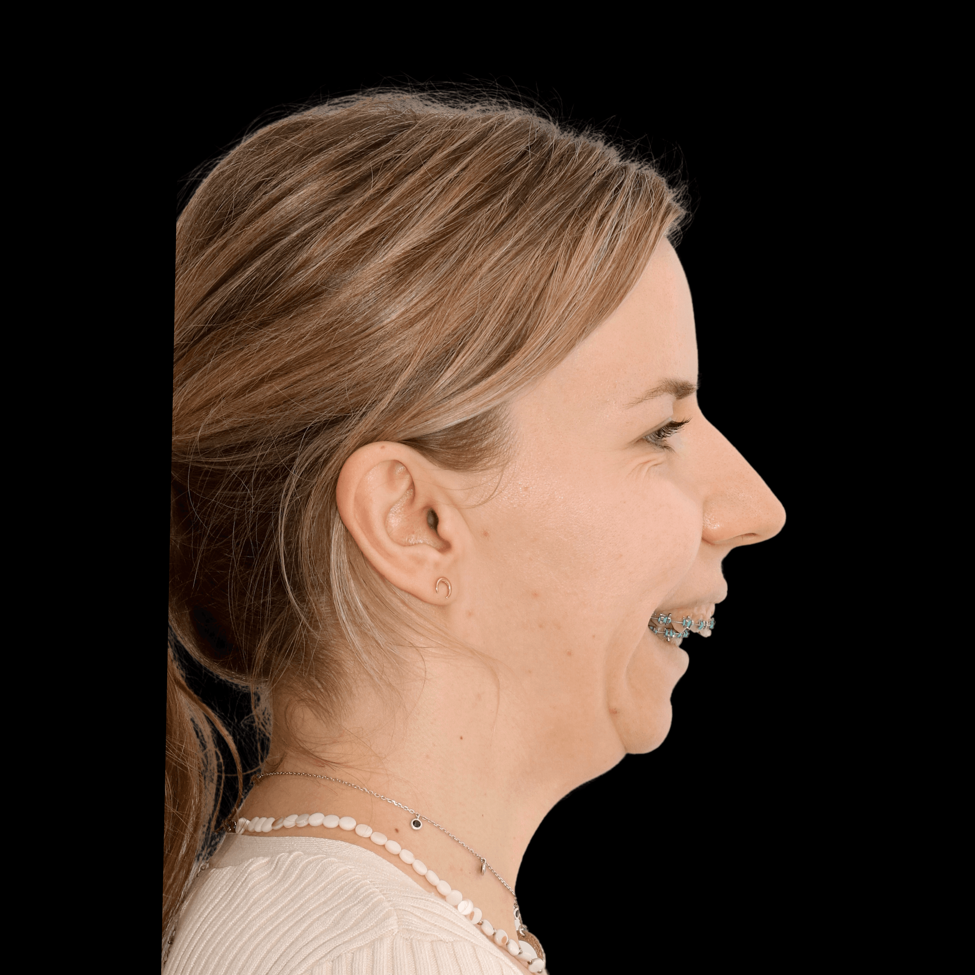 Zabieg obejmował repozycję szczęki, żuchwy i bródki w celu przywrócenia prawidłowego zgryzu i harmonii rysów twarzy.