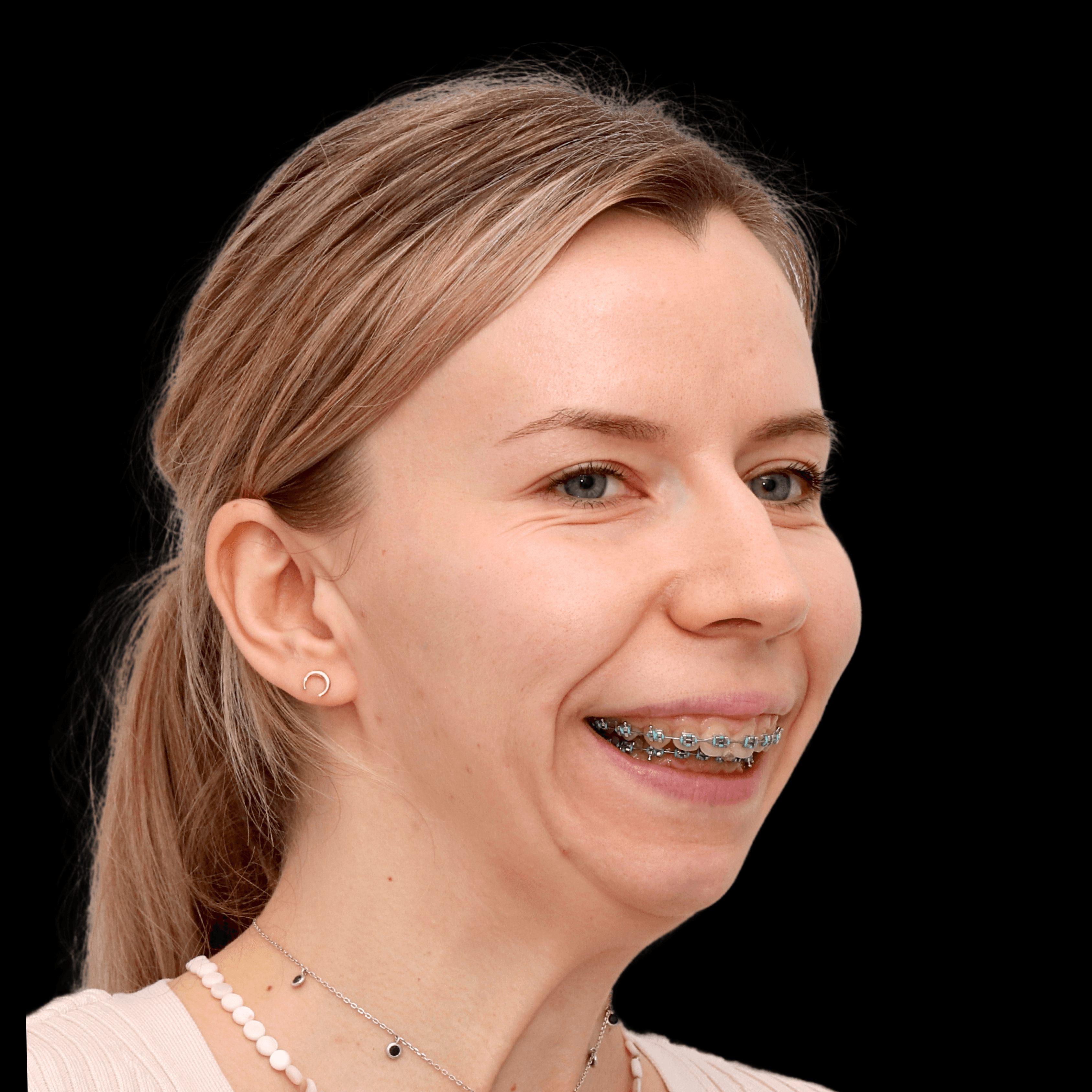 Operacja pozwoliła na uzyskanie prawidłowej funkcji zgryzu, wyeliminowanie bólu stawów skroniowo-żuchwowych oraz znaczną poprawę estetyki twarzy. Pacjentka podkreśla, że dzięki zabiegowi rozpoczęła „nowe życie” – odzyskała pewność siebie, swobodę w codziennym funkcjonowaniu i komfort, którego brakowało jej przez lata. Efekt estetyczny oraz funkcjonalny spełnił oczekiwania, a wdzięczność pacjentki za przeprowadzone leczenie jest najlepszym dowodem na sukces terapii ortognatycznej.