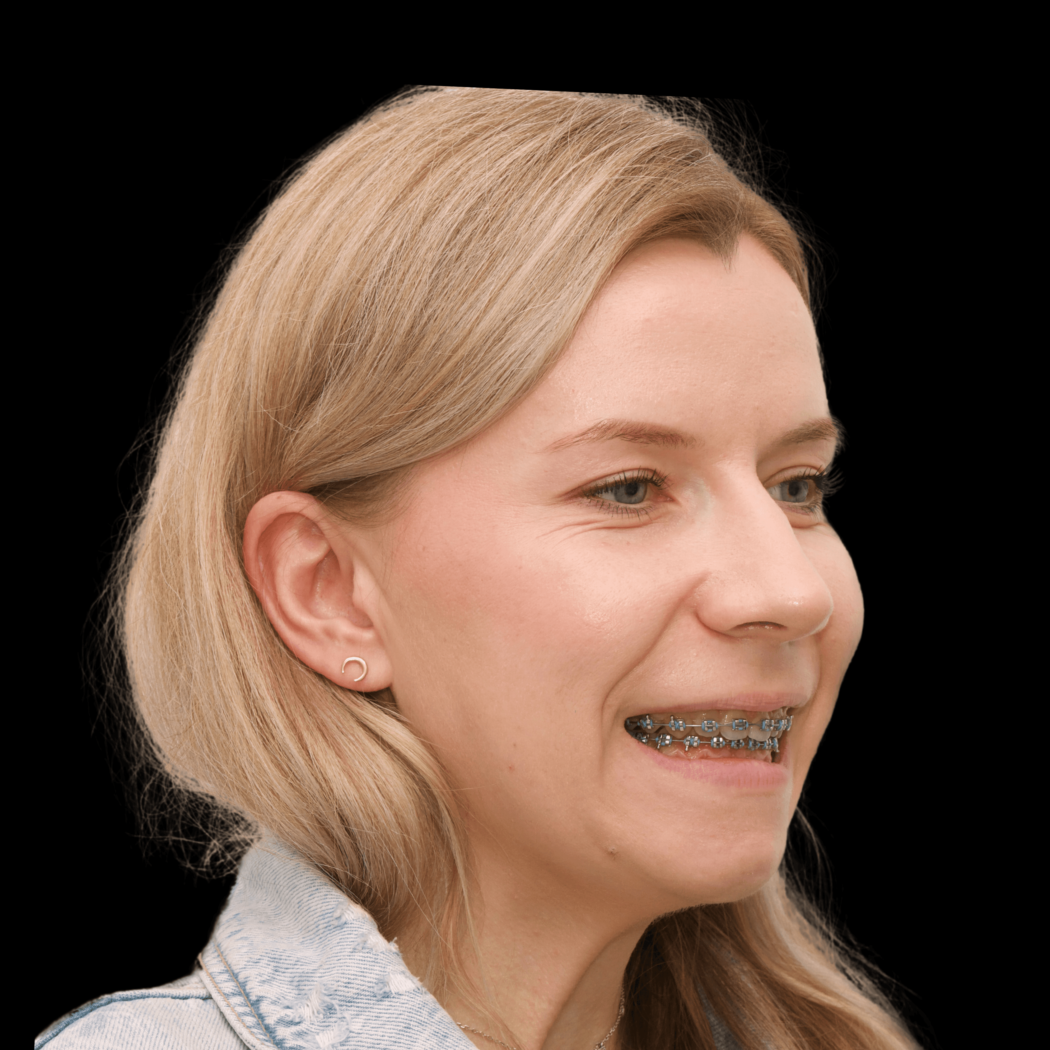 Pacjentka z poważnym problemem zgryzu – tyłożuchwiem, które powodowało nie tylko zaburzenia estetyki twarzy, lecz także dolegliwości bólowe stawów skroniowo-żuchwowych. Przez wiele lat pacjentka poszukiwała odpowiedniej metody leczenia. W tym czasie konsultowała się u różnych specjalistów, jednak nikt nie pokierował jej w stronę chirurgii ortognatycznej, która była jedyną szansą na kompleksowe i trwałe rozwiązanie problemu.
